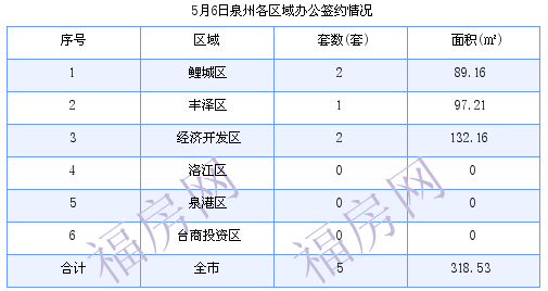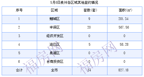 泉州5月6日住宅成交31套 面积3650.38平方米
