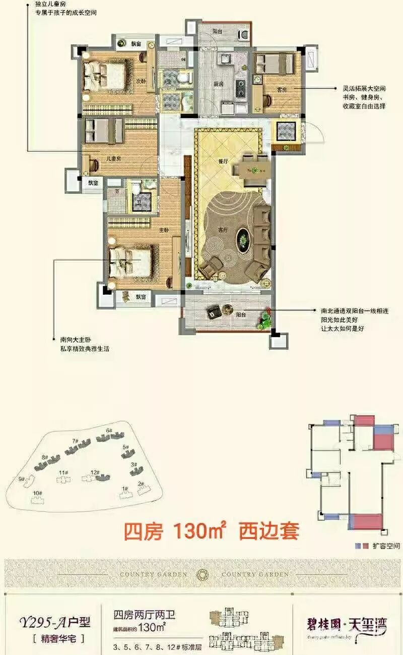 6#楼主推户型面积为87-130㎡3-4房,均为带装修房源。由于装修工作还未进行,预计将于2020年6月交房。户型图如下: