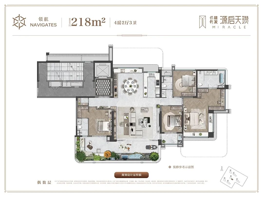 作为泉州首个全规划四代宅的纯粹豪宅社区,保利建发·源启天瓒规划6栋高层全系四代住宅产品,全盘仅224套。