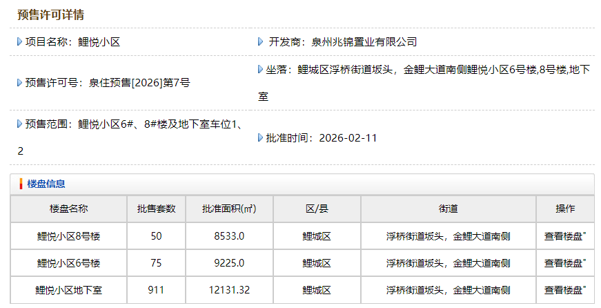 近日,位于鲤城江南新区的“建发・鲤悦”项目6#、8#楼共125套住宅获批预售,价格区间为14115-19060元 /㎡。